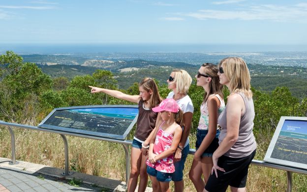 Nehmen Sie Erinnerungen mit, wenn Sie den Gipfel des Mount Lofty, Adelaides höchstem Gipfel, erreichen, da er Ihnen großartige Fotomöglichkeiten mit Panoramablick auf die Stadt als Kulisse bietet.