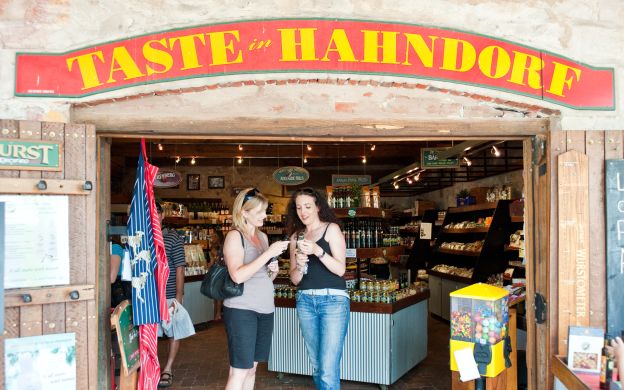 Schlängeln Sie sich durch die Dörfer Crafers, Stirling, Aldgate und Bridgewater in den Adelaide Hills, bevor Sie im Beerenberg Farm Shop ankommen, wo Sie Zeit haben, ihre gesamte Produktpalette zu probieren und zu kaufen. Als nächstes schlängeln Sie sich durch die Dörfer Crafers, Stirling, Aldgate und Bridgewater, um Adelaides älteste deutsche Siedlung, Hahndorf, zu erreichen. Sehen Sie die über 100 Jahre alten Ulmen und Platanen, die entlang der Main Street hoch stehen. Hier finden Sie noch die traditionellen Gebäude des Fachwerks aus den deutschen Siedlungen, von denen viele in den ursprünglichen Zustand zurückversetzt wurden. Die Straßen von Hahndorf sind gesäumt von Restaurants, Galerien, Kunst- und Kunsthandwerksläden und Souvenirläden.