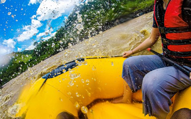 Der Padas-Fluss schlängelt sich durch mit Felsbrocken übersäte Schluchten, angeschwollene Stromschnellen und Tieflanddschungel und hat einen Schwierigkeitsgrad von III bis IV. Stürzen Sie sich von Pangi nach Rayoh hinunter, wo Sie vor der Rückfahrt zu einem wohlverdienten Grill-Mittagessen an Land gehen können. Das Barbecue-Mittagessen ist im Preis inbegriffen.