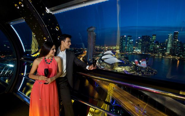 Gehen Sie an Bord des größten Riesenrads der Welt - Singapore Flyer - und bereiten Sie sich auf einen 5-Sterne-Menüservice mit atemberaubendem Blick auf die Skyline im Komfort einer geräumigen Kapsel vor.