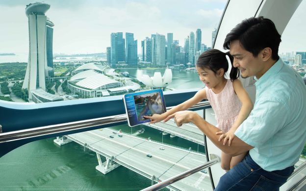 Gehen Sie an Bord des größten Riesenrads der Welt und genießen Sie ein erstklassiges kulinarisches Erlebnis mit dem Singapore Flyer. Geniessen Sie auf dem FLYER 360+, einem neu eingeführten interaktiven Erlebnis in der Kapsel mit 360-Grad-Blick auf Singapur, ein visuelles Fest mit ikonischen und historischen Sehenswürdigkeiten mit Geschichten hinter jedem von ihnen.
